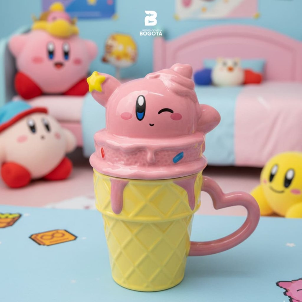 ¡La dulzura de Dream Land en tus manos! Esta irresistible taza (mug) de cerámica 3D presenta a Kirby en su forma más adorable, como un delicioso cono de helado derretido. Incluye una tapa decorativa y un asa en forma de corazón que la hace aún más encantadora. Es el accesorio perfecto para los fans de Kirby y de Nintendo, añadiendo un toque rosa y dulce a cualquier bebida o colección.